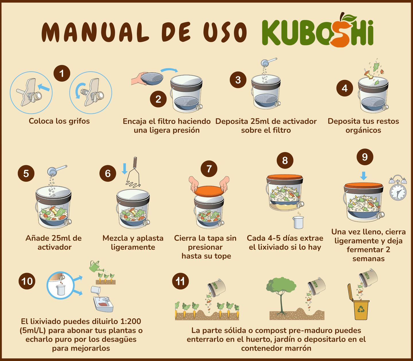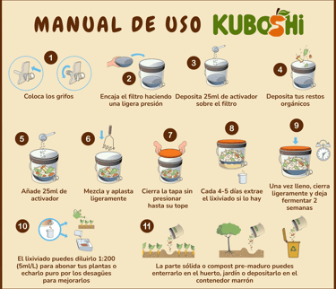 Kuboshi es un sistema sencillo y limpio de compostaje anaeróbico, adecuado para cualquier hogar o espacio. El proceso es fácil y seguro para todas las personas: