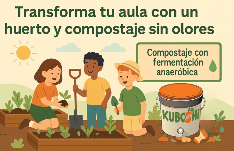 En esta guía práctica te explicamos cómo iniciar un huerto escolar acompañado del sistema Kuboshi, un método limpio, eficaz y adaptado al aula para gestionar los residuos orgánicos y transformarlos en recurso educativo.